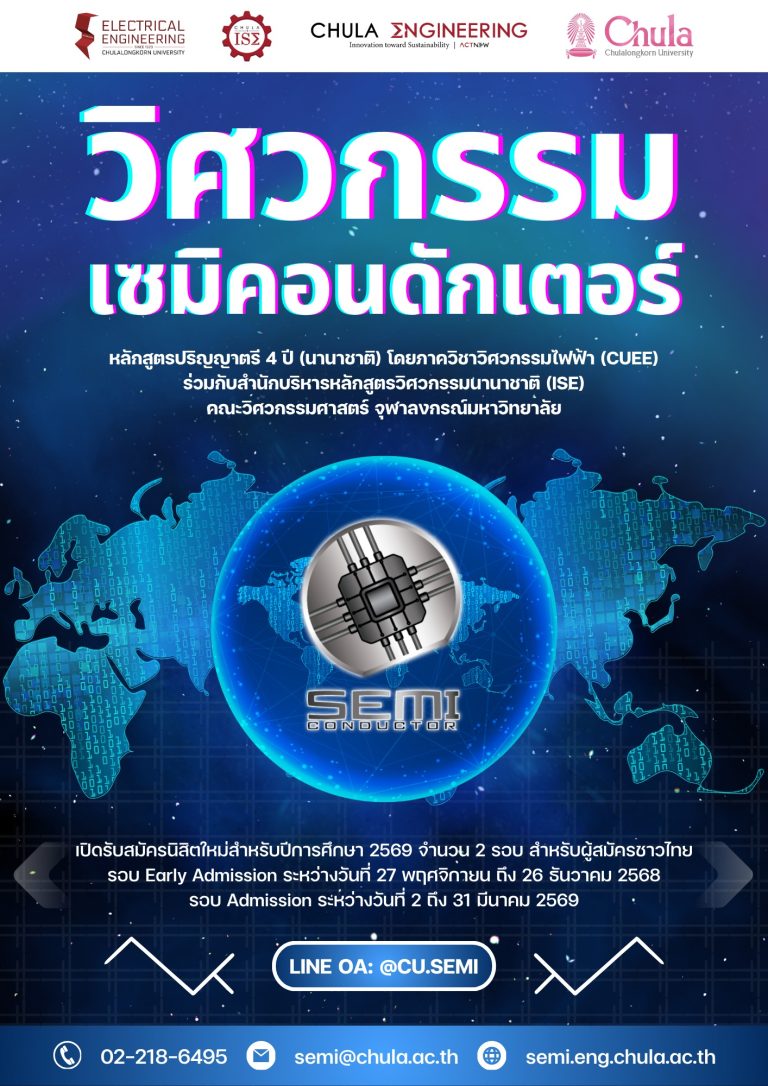 Chula’s Semiconductor Engineering (SEMI) program focuses on producing high-quality graduates to meet the industrial sector’s demand for high-performance semiconductor chips, which has increased exponentially. The demand for chips has surged due to the development of smart electronic devices and Artificial Intelligence (AI) technology that quickly process massive amounts of data in real time.